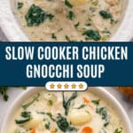 A comforting and creamy Slow Cooker Chicken Gnocchi Soup made with tender chicken breasts, hearty vegetables, pillowy gnocchi, fresh spinach, and Parmesan cheese simmered in a rich, flavorful broth. This easy-to-make soup is perfect for a cozy meal and pairs wonderfully with crusty bread.