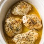 Here’s what I learned: avoid overcooking by checking the chicken around the 2.5-hour mark and adding butter on top before cooking really helps with moisture retention. Also, cooking on low rather than high ensures gentler heat and tender results.