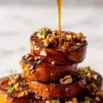 For holiday dinners, I like plating each sweet potato round individually on a platter, pouring the maple pecan sauce over each one, and sprinkling thyme leaves artistically. You could also serve it family-style in a rustic baking dish right from the oven—that warm presentation always wins compliments and invites everyone to dig in together.