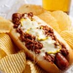 - Serve with Sides: Serve the chili dogs hot with plain crinkle-cut potato chips on the side for a traditional touch.