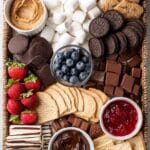 Create a fun and customizable S’mores Charcuterie Board perfect for indoor or outdoor gatherings, featuring a variety of cookies, chocolates, fruits, and marshmallows for everyone to toast and assemble their perfect s’more.