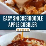 - This snickerdoodle cobbler is a dream dessert combining hot, spiced apples, chewy snickerdoodle cookies, and luscious caramel.