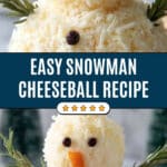 This easy snowman cheeseball is a charming and festive appetizer perfect for winter celebrations. Made with sharp cheddar, cream cheese, butter, and flavorful seasonings, it is shaped into a cute snowman garnished with peppercorns for eyes and buttons, a carrot nose, and rosemary arms. Simple to prepare and delightful to serve, this cheeseball is sure to be a standout centerpiece on any party table.