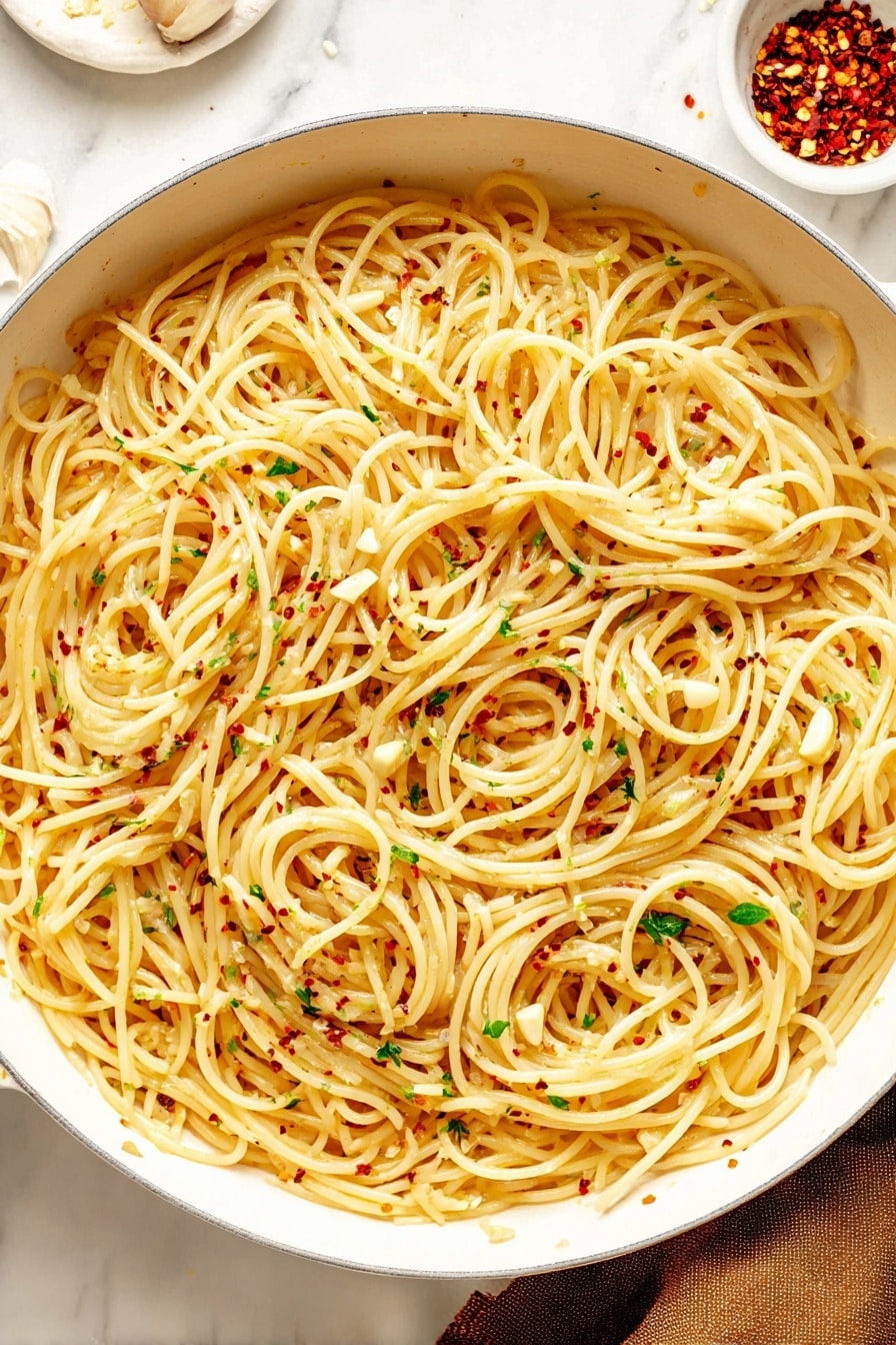 For a special occasion, I like twirling individual portions into neat nests on the plate and sprinkling extra parsley and red pepper flakes for a vibrant look. Drizzling a little more good olive oil right before serving also adds a beautiful sheen that makes it look restaurant-worthy.