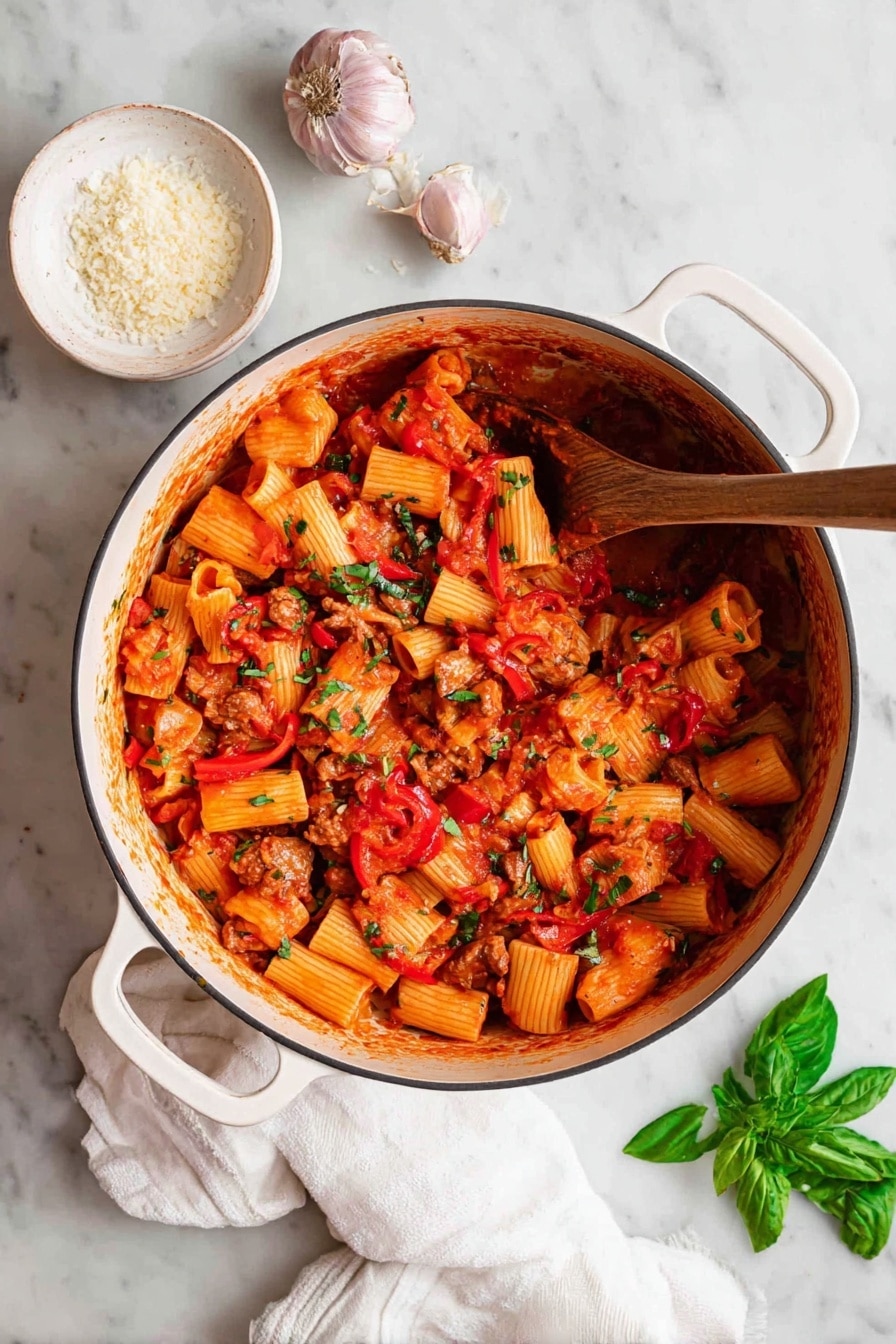 Start by boiling a big pot of salted water—this is your chance to season the pasta inside out. Cooking the rigatoni according to package directions means it’ll be perfectly al dente and ready to soak up all the sauce later. Don’t overcook here; a firm bite is key since the pasta will simmer a bit more in the sauce afterward. After draining, give it a quick rinse if you want—but I usually don’t, to help the sauce cling better.