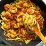 Freezing this dish is a bit tricky since cooked shrimp don’t freeze as well, but you can freeze the sauce portion separately for up to 2 months. Then just thaw and add freshly cooked shrimp and pasta when you’re ready to eat.