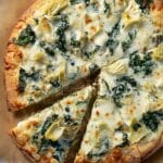 A delicious Spinach Artichoke Pizza that combines the creamy, savory flavors of spinach artichoke dip with a crispy homemade or store-bought pizza crust. This comforting pizza features sautéed spinach, a rich béchamel sauce, a blend of provolone, mozzarella, and parmesan cheeses, and tender canned artichoke hearts, baked to golden perfection on a pizza stone.