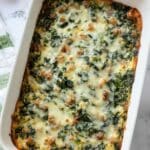 A hearty and nutritious Spinach and Mushroom Breakfast Casserole made with sautéed mushrooms, fresh spinach, and a rich mixture of eggs, cottage cheese, and sharp cheddar cheese. Perfectly baked to a golden brown for a delicious and satisfying morning meal.