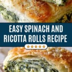 These Spinach and Ricotta Rolls are a savory and nutrient-packed dish featuring a deliciously creamy spinach and cheese filling wrapped in flaky phyllo dough. Perfect as a vegetarian main or side, they combine tender sautéed onions, tender blanched spinach, ricotta and Parmesan cheeses, and zesty lemon for a bright, flavorful bite. Ideal for entertaining or make-ahead meals, these rolls bake to golden perfection with a crisp, buttery crust.