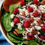 I don’t recommend freezing this salad because the spinach and berries won’t hold up well when thawed—they’ll get mushy and watery. It’s best enjoyed fresh or refrigerated for a day or two.