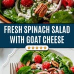 I don’t recommend freezing this salad because the spinach and berries won’t hold up well when thawed—they’ll get mushy and watery. It’s best enjoyed fresh or refrigerated for a day or two.