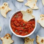 My go-to pairing includes salsa (classic choice), homemade guacamole, or—my absolute fave—Pumpkin Taco Soup for a cozy, Halloween-inspired combo. You can also try queso dip or black bean dip to keep that spooky vibe going.