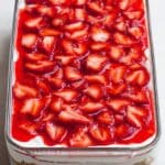 - Add the Strawberry Jell-O Layer: Hull and slice 1 pound of fresh strawberries. Gently stir the sliced strawberries into the room temperature strawberry Jell-O mixture. Pour this evenly over the chilled cream cheese layer and spread carefully. Refrigerate the assembled dessert for 2 to 4 hours or until the Jell-O is fully set.