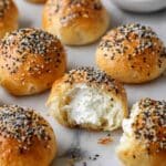 These Easy Stuffed Bagel Bites are a delicious homemade snack made with a simple 4-ingredient dough and creamy cream cheese filling. No yeast or boiling required, these mini bagels have a soft, chewy texture and are sprinkled with Everything But The Bagel seasoning for that perfect flavor, reminiscent of your favorite bakery or coffee shop treats.