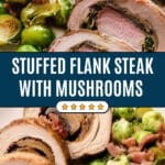 After resting, carefully remove the kitchen twine and slice the stuffed flank steak into 1/2-inch thick rounds. Each slice reveals the gorgeous spiral of mushrooms, prosciutto, and cheese nestled inside. I love the look this creates on the plate—it’s just as stunning as it is delicious.