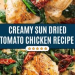 Sun Dried Tomato Chicken, also known as Marry Me Chicken, features tender chicken cutlets seared to perfection and simmered in a rich, creamy white wine sauce with sun dried tomatoes, garlic, spinach, and fresh basil. The sauce is enhanced with Pecorino Romano cheese for an indulgent finish, making this dish perfect for a comforting yet elegant meal.