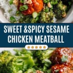 - Delicious sesame chicken meatballs paired with crispy broccoli and a sweet, spicy ginger sesame sauce.