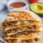 For casual parties, I cut each quesadilla into smaller wedges and serve them on a big platter with small bowls of guacamole, pico de gallo, and sour cream—you can’t go wrong with shareable finger food. I’ve also wrapped quesadillas in foil to keep them warm during tailgate parties or picnics.