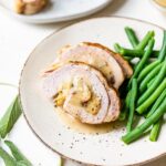 This Turkey Roulade recipe features a juicy boneless turkey breast rolled with a flavorful cranberry and whole wheat bread stuffing, tied with cooking twine, and cooked to perfection. Served with a savory turkey gravy, it makes an ideal centerpiece for Thanksgiving or any special occasion for a small gathering.