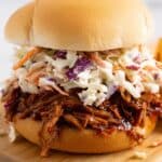 These BBQ Jackfruit Sandwiches offer a delicious, plant-based twist on the classic American pulled pork sandwich. Tender jackfruit is seasoned, cooked, and smothered in tangy BBQ sauce, then piled onto hamburger buns and topped with vegan coleslaw for a satisfying vegan meal that’s quick and easy to prepare.