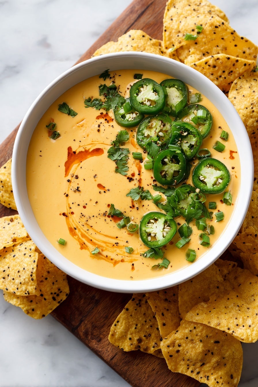 This queso shines as a party dip with crunchy tortilla chips, but I also love drizzling it over loaded nachos or dolloping it on vegan burrito bowls featuring black beans and avocado. It’s fantastic as a creamy sauce for veggie quesadillas or even as a dip alongside freshly roasted veggies and pita chips.