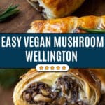 Once done, let your delicious Mushroom Wellington rest for 5-10 minutes before slicing and serving. This helps the filling set so it doesn’t spill out.
