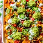 Loaded Veggie Nachos are a vibrant and delicious meat-free dish featuring crispy tortilla chips topped with melted Mexican cheese, colorful veggies, beans, and flavorful toppings like sour cream, guacamole, salsa, and fresh cilantro. Perfect as a snack, appetizer, or main dish, these nachos bring a festive touch to any gathering.