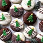 Create festive Winter Wonderland Chocolate Dipped Oreos by coating classic chocolate sandwich cookies in rich dark or milk melting chocolate, then decorating with snowy white chocolate and charming evergreen tree sprinkles. These easy-to-make treats are perfect for holiday parties or gifting, delivering a magical winter scene with every bite.